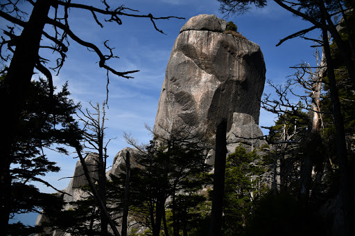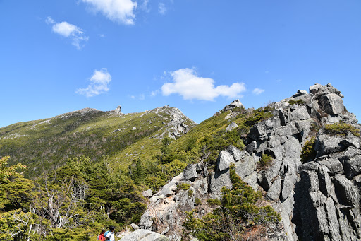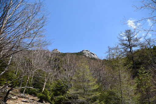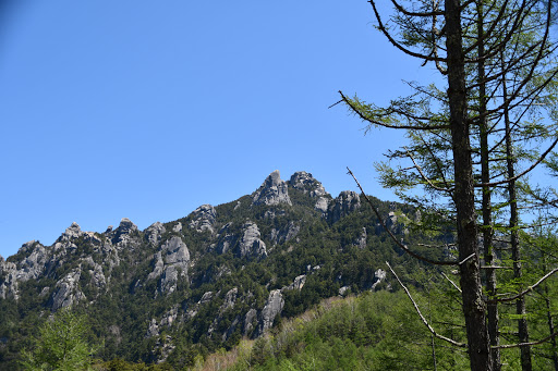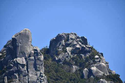 50分ほど歩みを進めていくと、上の方に見えるのは、金峰山の山頂の五丈石ではなく、大日岩。山頂はまだまだ先です。