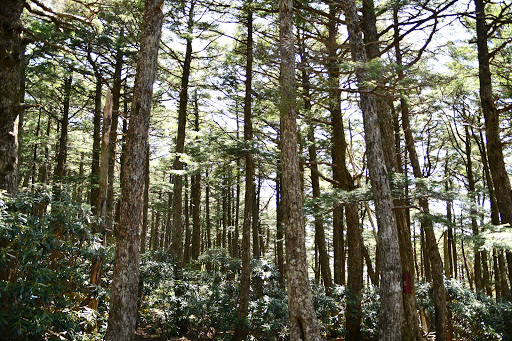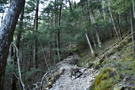 まだしばらく樹林帯を進んでいきますが、割と背が低く細めの木々です。