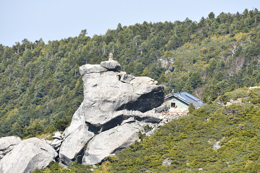 大日小屋。素泊まりの無人小屋ですが、富士見平小屋で管理しているので宿泊料金はそちらで支払います。テントも数張は張れるようです。