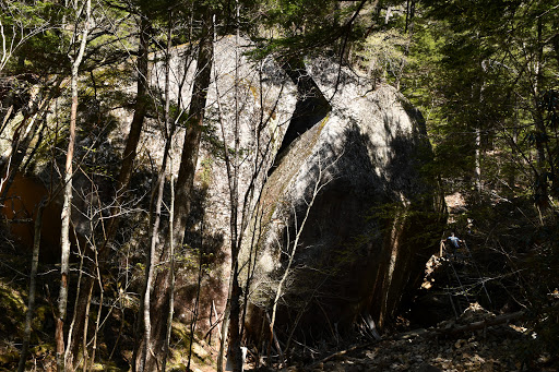 桃太郎岩。桃が割れたかのようにパックリと大きな丸い岩に亀裂が入っています。